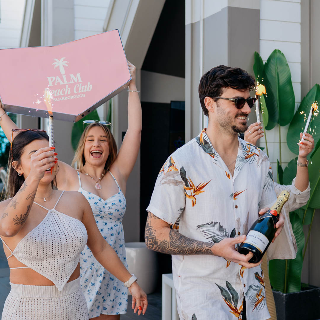 Tucked away beneath the palms lies Scarborough’s newest playground by the sea, Palm Beach Club. Think private bungalows, bottles on ice brought straight to your cabana, endless margs that flow as freely as the ocean breeze and a soundtrack curated by resident DJs & national touring acts.